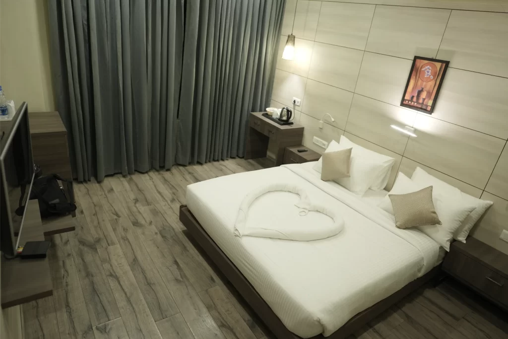 Our Deluxe Rooms are designed to provide a warm, comfortable, and relaxing stay. With elegant interiors, a well-furnished bedroom, and an attached bathroom, these rooms are ideal for both business and leisure travelers. Thoughtfully equipped with modern amenities, the Deluxe Rooms ensure a pleasant and convenient stay with all the essential comforts.